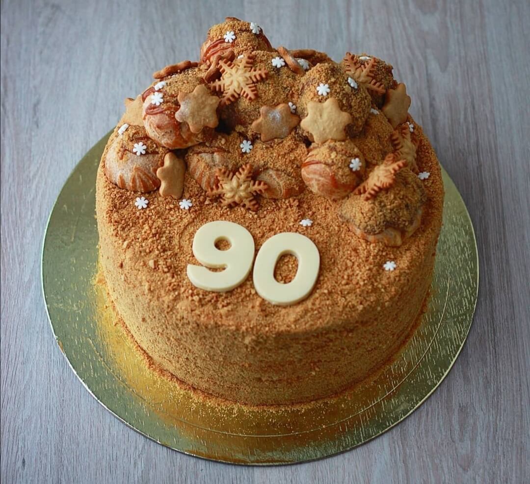 Уютный медовый тортик на крупный юбилей любимых бабушек и дедушек