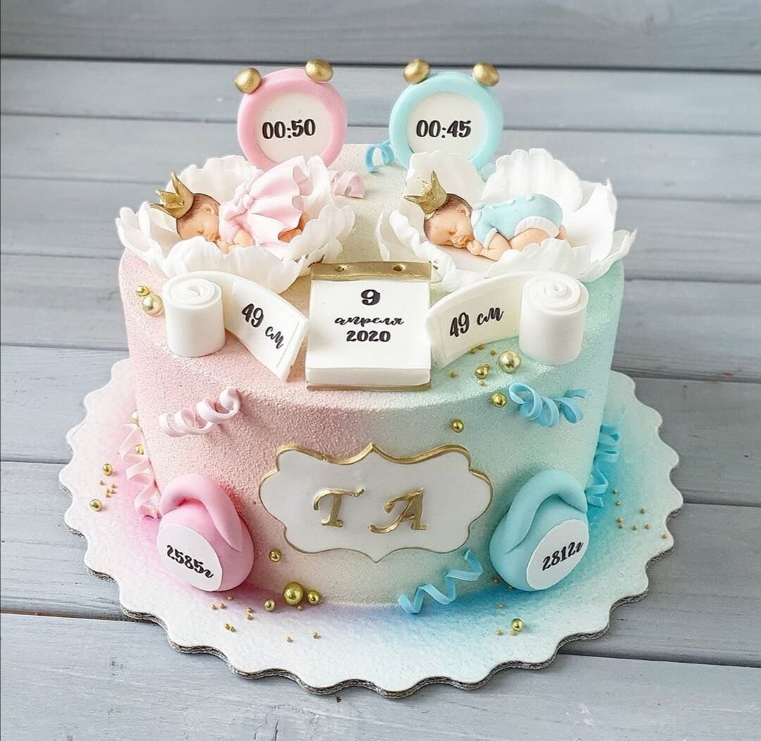 Торт метрика на рождение двух прекрасных разнопололых малышей